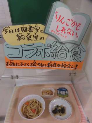 今週と来週は『図書旬間』です。給食では図書室の本にちなんだ料理が登場します。