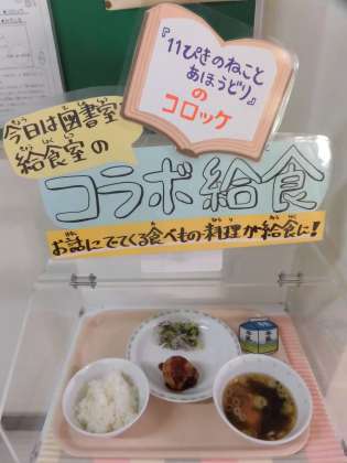 今日は図書旬間第5弾です。「11ぴきのねこ と あほうどり」という本から、みんなで「コロッケ」を食べます。