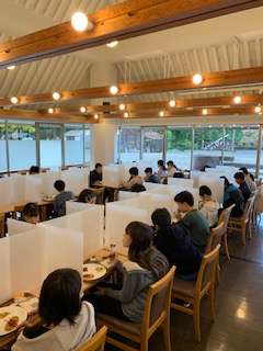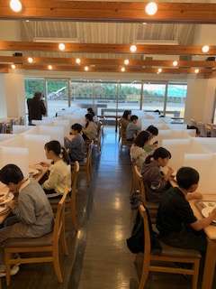 食べている背中画像ですが、朝食はこんな感じで食堂でいただいています。