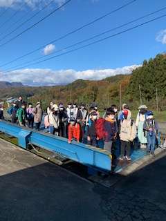 村巡り中に、巨大な重量計にクラスみんなで乗りました。ひとクラスで約1.3t。