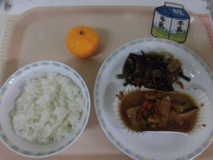 今月は「和ごはん月間」です。今日は、日本のおいしい食べ物を取り入れた郷土料理「鮭のちゃんちゃん焼き」です。旬の鮭と野菜を蒸し焼きにしたみそ味の料理です。