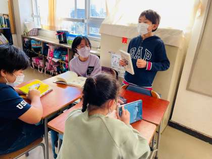 山崎小の4〜6年生は、年に一回以上ビブリオバトルを行い、おすすめの本を紹介し合っています。