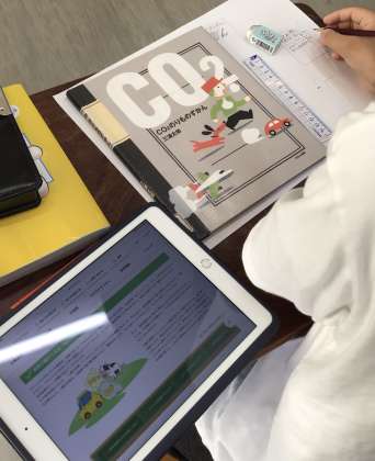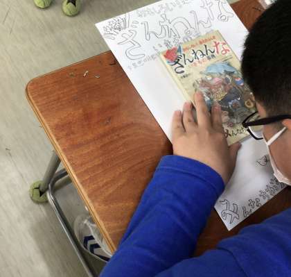 国語のCグループでは、今、おすすめの本についてポスターを描いています。