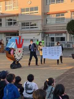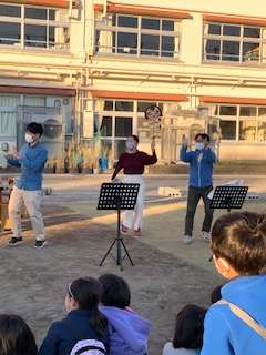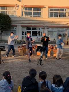 フリ付きで『やまざきいちばん』を歌い、校歌をロックバージョンにして歌ってくれました。
