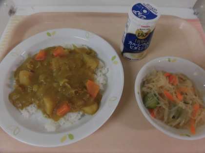 年に一度の土曜日給食は、みんなが大好きな「米粉カレー」です。しっかり食べて、午後も頑張りましょう。