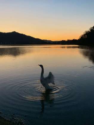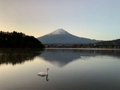 今朝は白鳥と逆さ富士のツーショットが見れました。