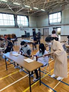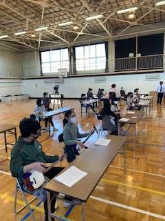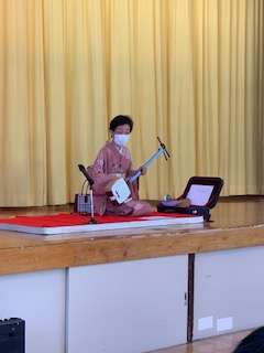 山崎太鼓という伝統芸能を体験している子どもたちですが、今日は三味線です。