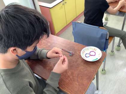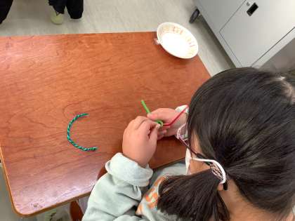 「ねじる」という手先の動作を兼ねて、季節の飾りを作りました。