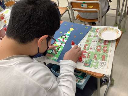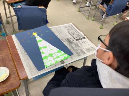 こちらも、先週にオクラでスタンプした星空に貼って・・・