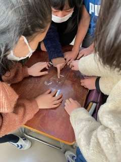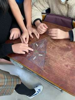 算数の時間、三角定規を複数組み合わせて大きな正三角形を作る方法をみんなで考えました。