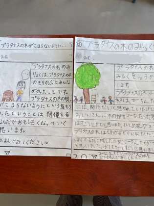 今日の国語の授業でプラタナスの木の魅力を伝える活動を行いました!!