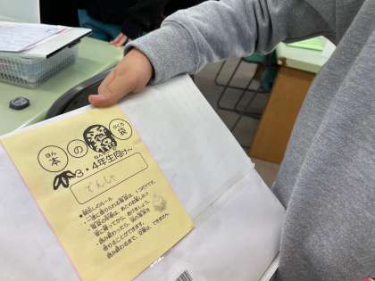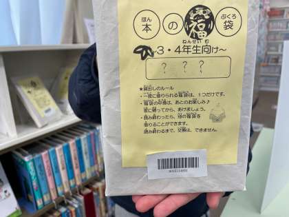 図書委員の取り組みで、図書委員会の子たちがおすすめの本を袋に詰めてくれていました。