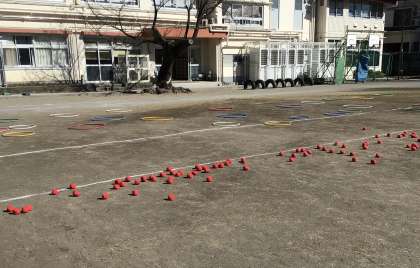 今、仲よし学級の体育では、ボールを投げたり捕ったり、蹴ったりする運動に取り組んでいます。
