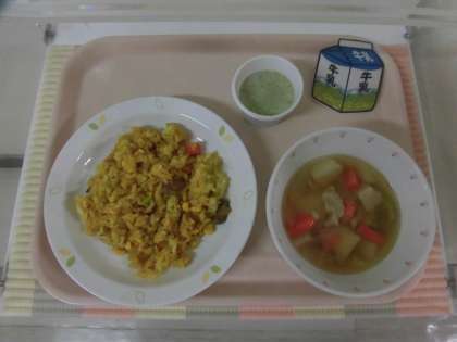 今日は、東京の特産物「明日葉」を使ったミルクゼリーをみんなで食べます。
