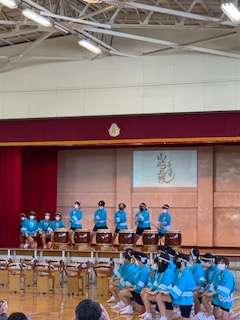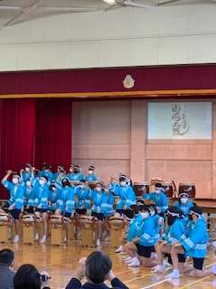 今年度はバトンタッチはご覧いただけないので、30代目の最後の山崎太鼓を保護者に披露しました。