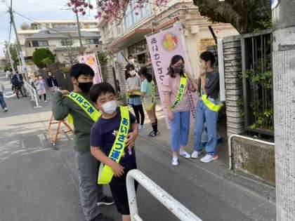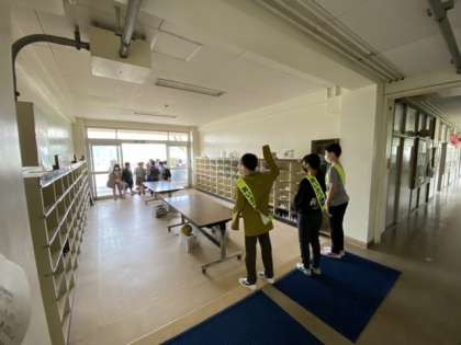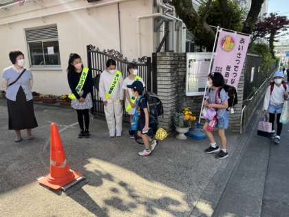 ました。校門や、各昇降口に立ち、全校の児童に挨拶を呼びかけ
