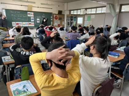 行いました。先生が黒板に国名を書き、その国名が読み上げられたら