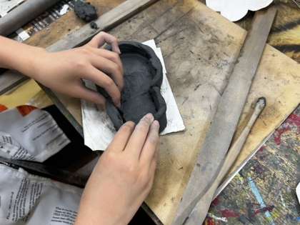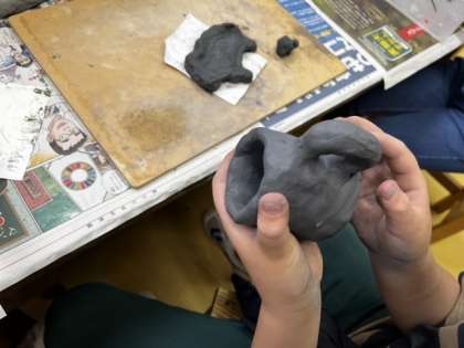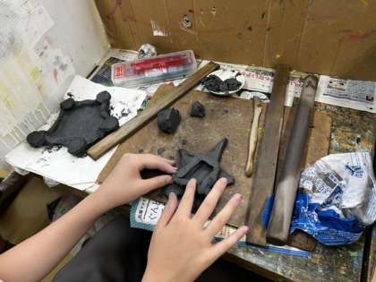 材料は粘土です。「たたら」を用いて、生活に使える作品を
