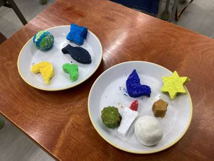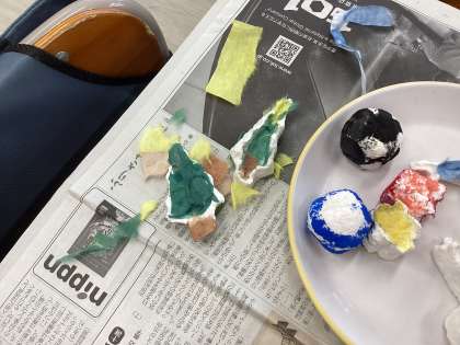 牛乳パックを溶かして型に固めるところからスタートしたストラップ作りも、ゴールが近づいてきました。