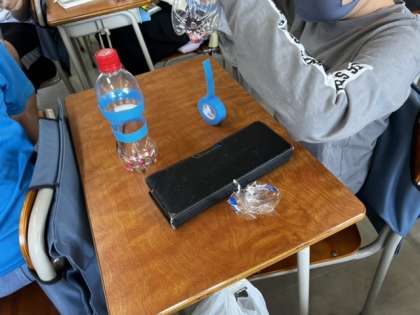 スポーツ祭り「春」の応援に使用するペットボトルに
