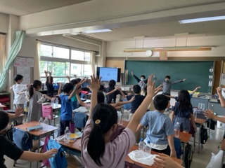 中休み、応援団のお兄さんお姉さんが来て、応援の仕方やダンスを優しく教えてくれました!