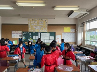 3年生の花笠音頭で着るはっぴを試着してみました!