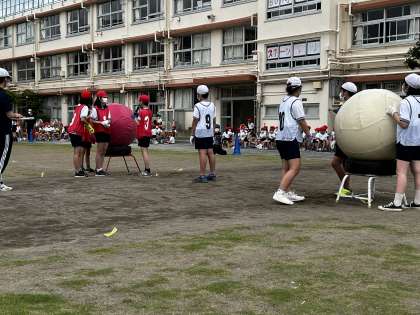 1、2、3年生は大玉を転がします。4、5、6年生は