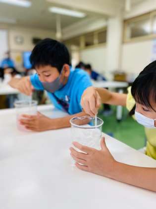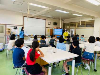 環境授業の一環として下水道の仕組みと役割について理解を深め、環境にやさしい行動をしていただくことを目的として水道局の方に来ていただき授業を行いました。
