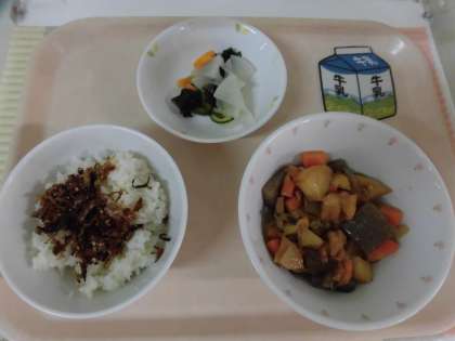 今日の「かみかみつくだ煮」は、じゃこ、削り節や塩こんぶが入っていて、しっかり噛むと美味しくなります。噛むことは、歯の健康や食べ物の消化を助けます。よく噛んで残さず食べましょう。