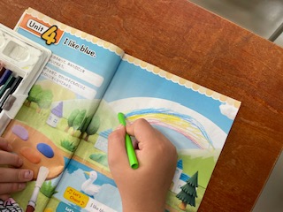 友達と、I like〜.と好きな色を上手に伝え合いました!!