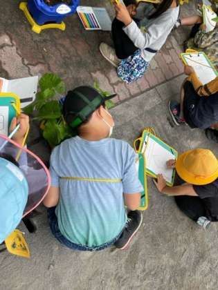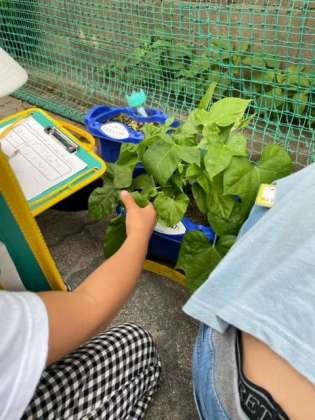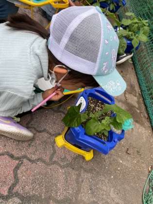 直接手で触ったり、匂いを嗅いだりしています。アサガオの声に耳を傾けている姿も!