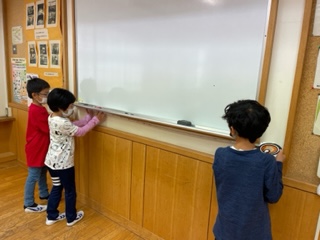 今日はさらに、ランチルーム内の机やホワイトボードも力を合わせてはかってみました!