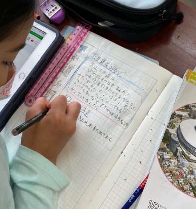 学習した内容を整理しながら新聞にまとめています。