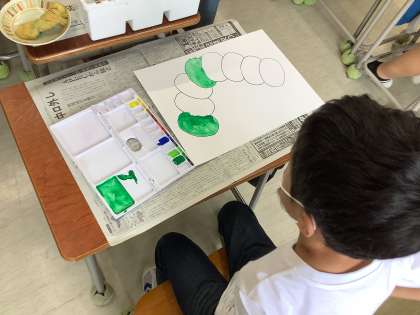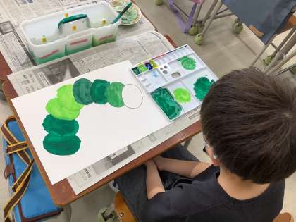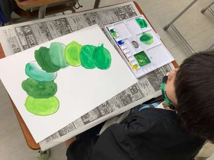 次に、黄色と青を自分で混ぜて作った緑で塗りました。