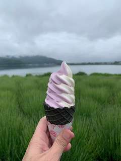 バラのアーチで記念撮影して、ソフトクリームを美味しく頂きました。