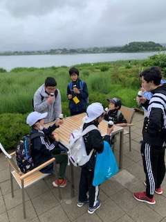 大石公園にお散歩に行きました。湖畔を通って15分ほどで到着。