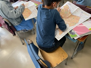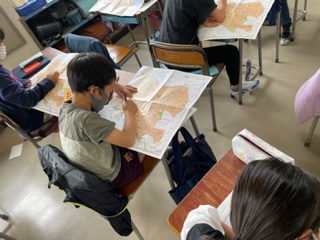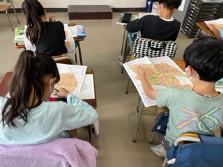 2組では世田谷区内の畑の分布の様子を地図を使って調べました。