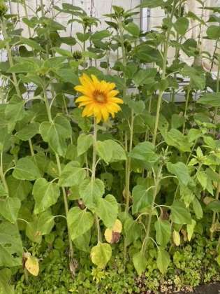 暑さにも負けず、自分の身長を超えるほど成長するヒマワリに子供たちもびっくり!
