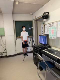 暑くなり始めてから校庭に出ることをやめてTV朝会をしています。今朝は雨降りですのでもちろんTV朝会です。