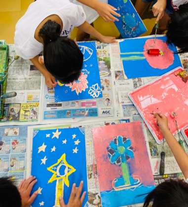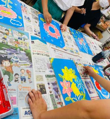 自分なりに色を組み合わせて、大切な花にふさわしい色で印刷をしていました。