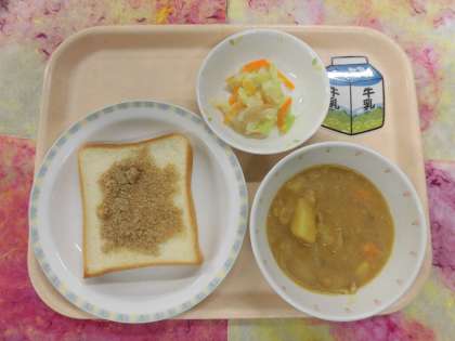 今日は朝からの雨で湿度が高い給食室ですが、大きな釜いっぱいにカレ−シチューを作りました。1学期の給食もわずかですが、残さず食べて元気に過ごしましょう。