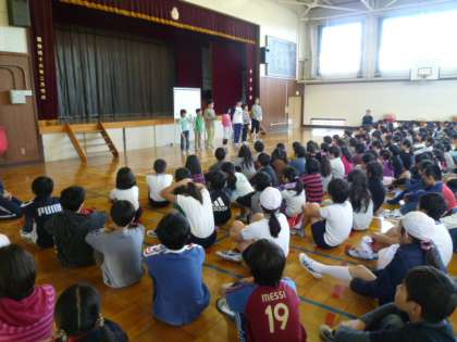 11月21日(月)の朝会は、今年度第5回「詩の発表朝会」でした。仲よし学級7名のみなさんが、詩「わたしと小鳥とすずと」(金子みすず・作)を全校の前で発表しました。「すず、小鳥、わたし」それぞれのよさを伝えるとともに、みんなで力を合わせて表現することの楽しさを味わい、練習の成果を発揮し元気に発表することができました。