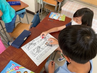 1学期最後の外国語活動では、英語のすごろくを楽しみました!!