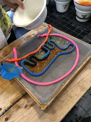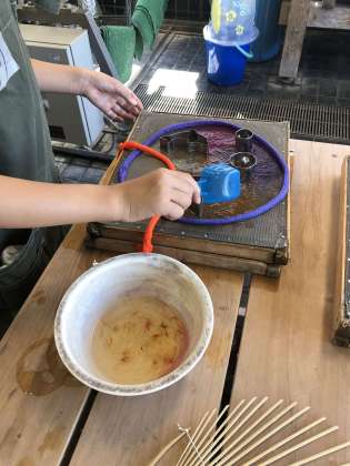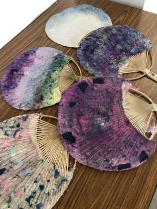 7月25日、夏の教室2日目、4〜6年生が団扇を作りました。低学年とは違った手法で作りました。さすがに紙漉きも何度か経験していることもあってとっても素敵な団扇が出来上がりました。完成品は後日またご覧ください。