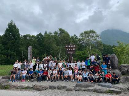 雨が降る隙間をぬって、戦場ヶ原で集合写真。