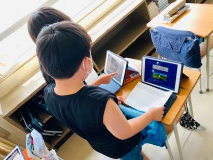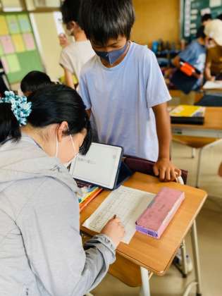 夏休みに考えた都道府県クイズを、お互いに答え合いました。同じ答えの都道府県でも、問題や写真などが違って楽しむことができました。