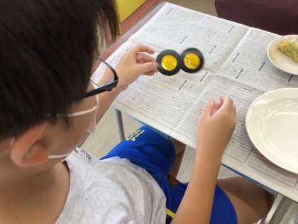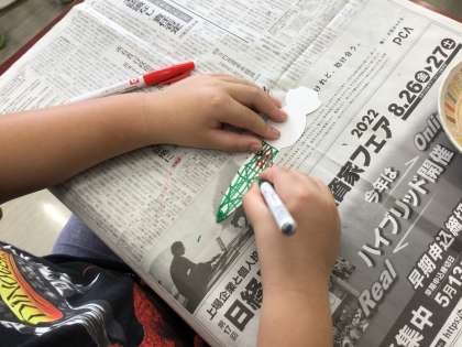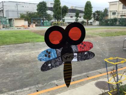色とりどりのとんぼが、仲よし学級前の廊下を飛び回っています。
