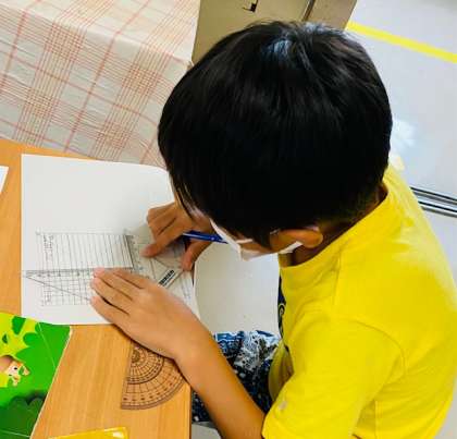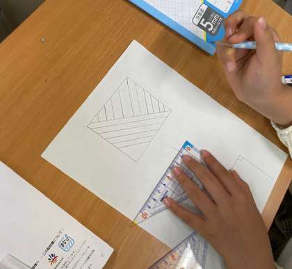 三角定規を使って垂直な直線と平行な直線をかきました。