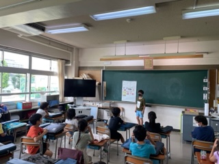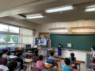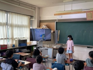 夏休みの自由研究を発表している様子です。