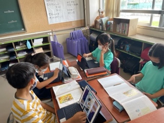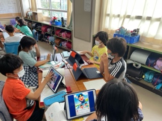 なかなかじっくり見ることのないポスターですが、班の友達と気付いたことを話し合いながら、時間をかけて見ています。